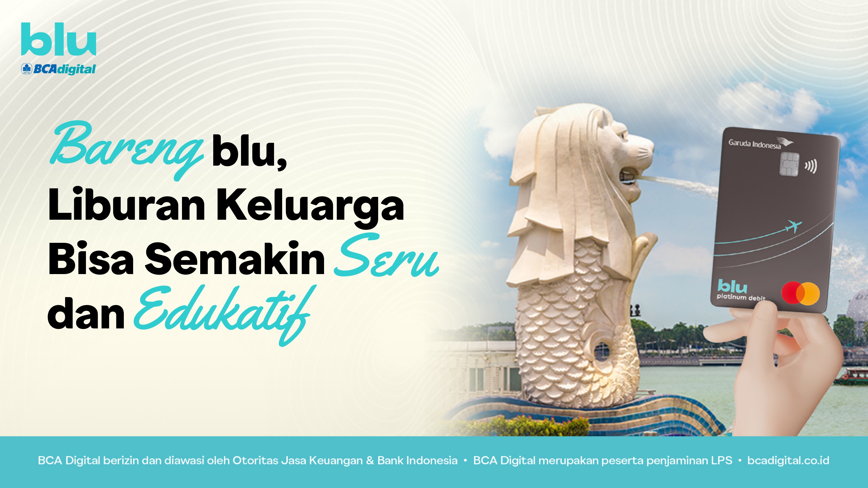 Bayangkan liburan impian ke Singapura dengan tiket aman, itinerary jelas, dan keuangan terkelola tanpa ribet. Bersama blu by BCA Digital, semua itu bisa diwujudkan dengan lebih mudah dan bermakna. Nikmati berbagai promo eksklusif, cashback menarik, dan kemudahan transaksi selama di Singapura dengan fitur-fitur andalan blu. Untuk informasi lebih lanjut tentang berbagai promo, program, dan hadiah menarik lainnya, Sobatblu dapat mengikuti akun Instagram @blubyBCADigital. Adapun informasi terkait berbagai promo yang dihadirkan blu by BCA Digital, unduh aplikasi blu di App Store dan Google Play Store, atau kunjungi laman berikut ini: http://blu.id/liburansingapura.